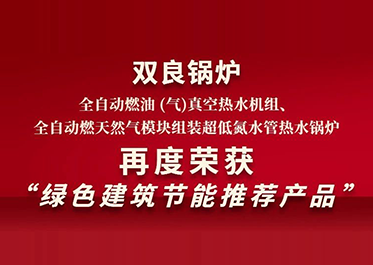 近日,經(jīng)中國工程建設標準化協(xié)會綠色建筑節(jié)能產(chǎn)品專家委員會審查、評定,江蘇雙良鍋爐有限公司(簡稱“雙良鍋爐”)研發(fā)生產(chǎn)的全自動燃油(氣)真空熱水機組、全自動燃天然氣模塊組裝超低氮水管熱水鍋爐,符合相關要求,再度被授予“綠色建筑節(jié)能推薦產(chǎn)品證書”,在工程建設領域推薦使用。